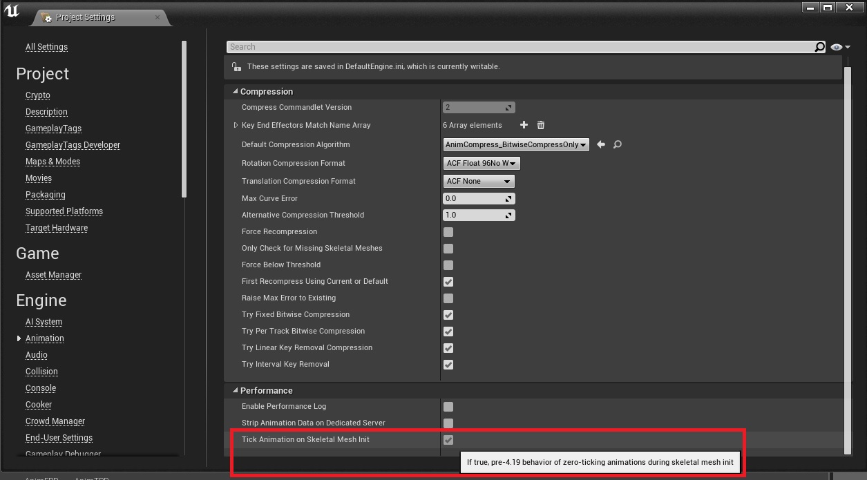 The animations are set up so that they support IK for the left hand in order to fine-tune its position based on what kind of weapon the character is holding. The AnimBP reads the value from the weapon and adjusts the position, this makes it possible to reuse the same animations for multiple weapons.