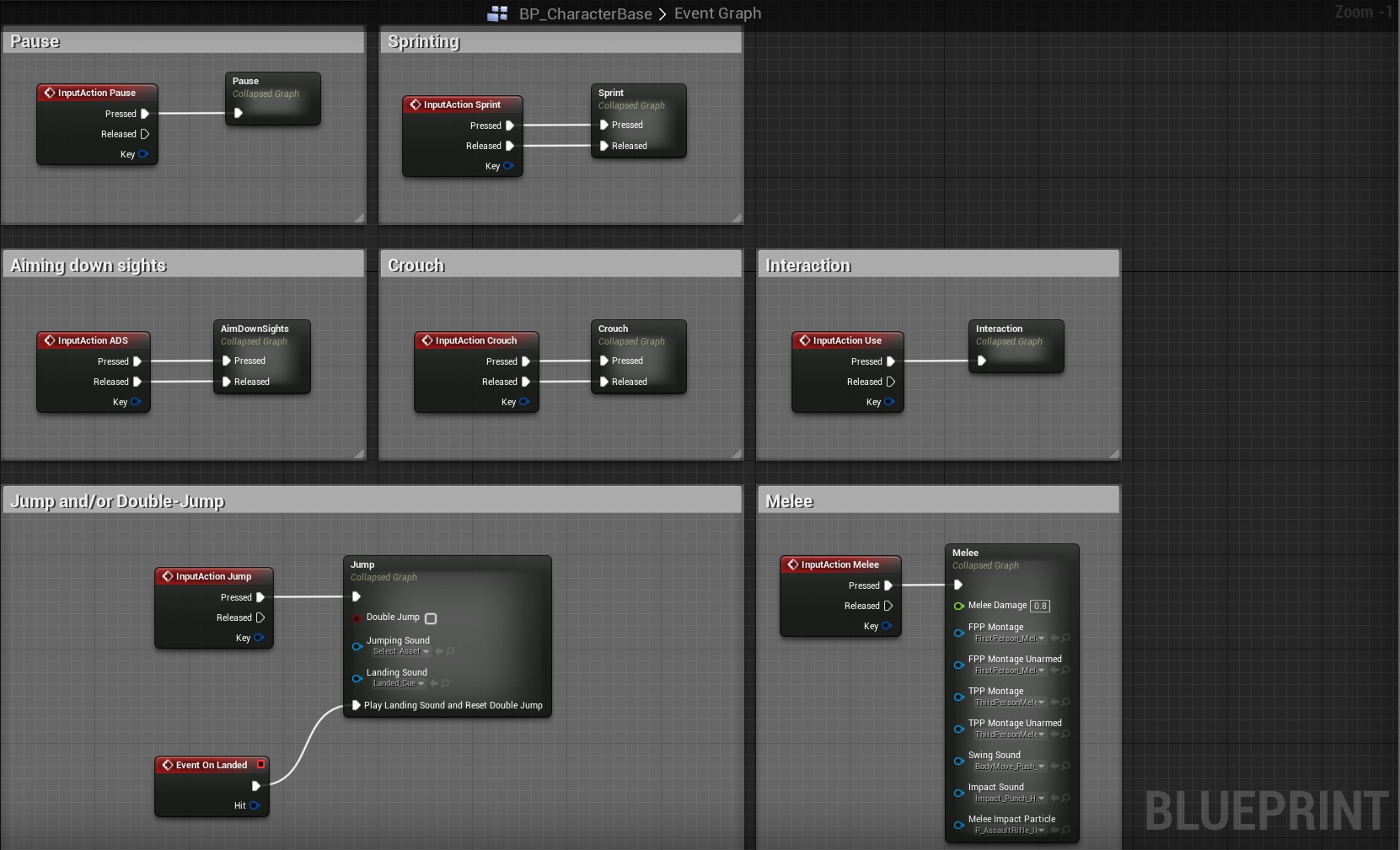 The point is, this is the base class for the character blueprint, everything related to it is located here, there are only 4 other blueprints that are relevant to it, those are: