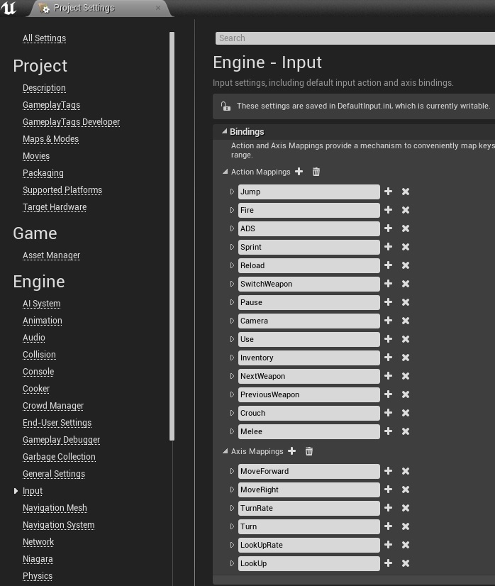Because there is no custom GameInstance, any settings menu you have can be added, simply connect it to the character at begin play.