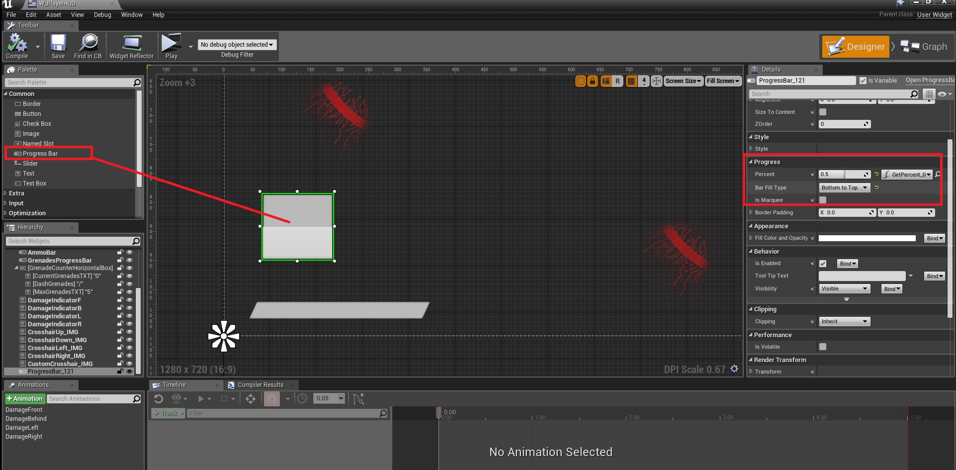 3. Open the W_PlayerHUD widget and add a new progress bar (this is optional)
