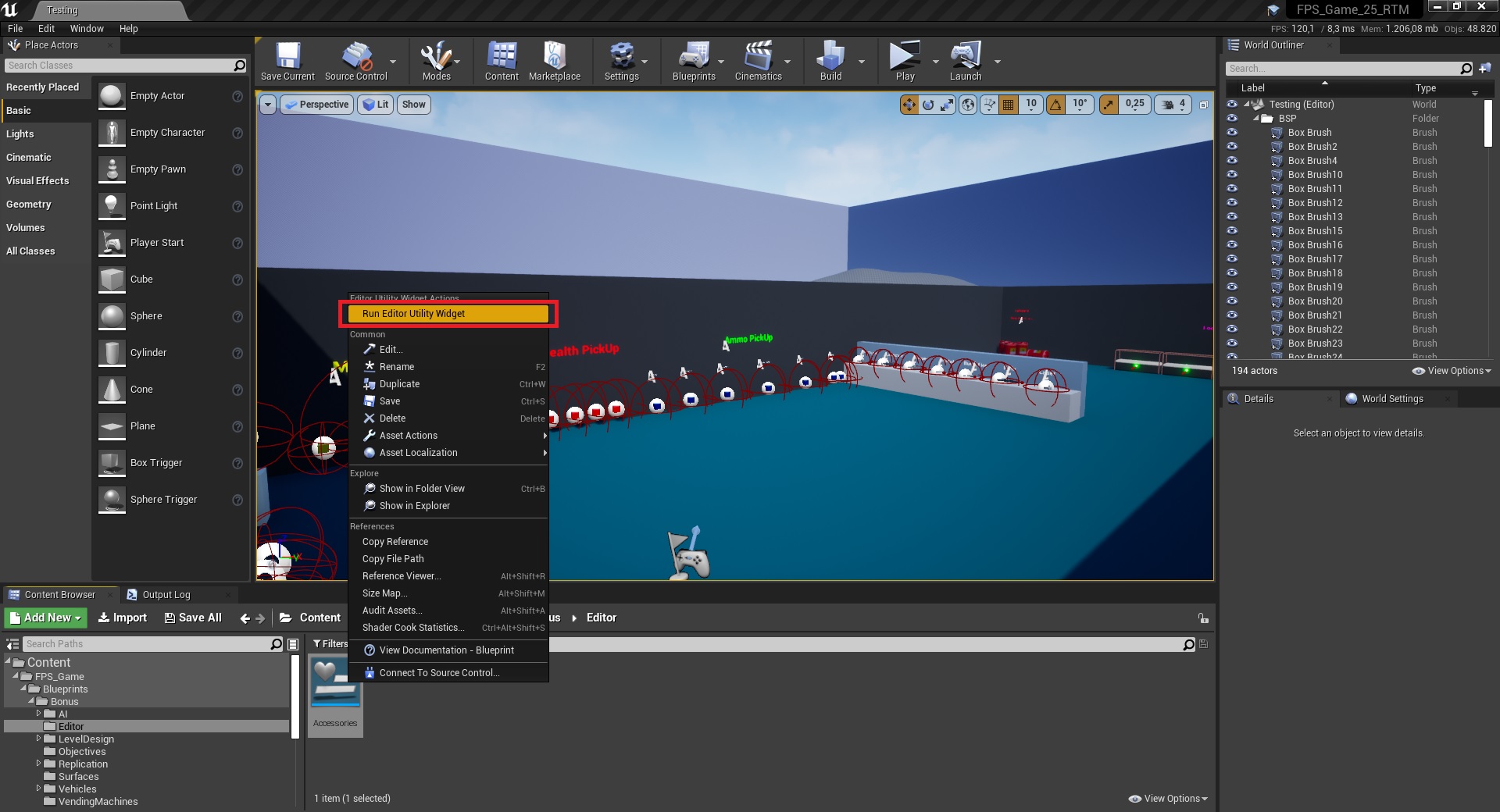 4. Now right click on the Utility Widget Blueprint and click on Run