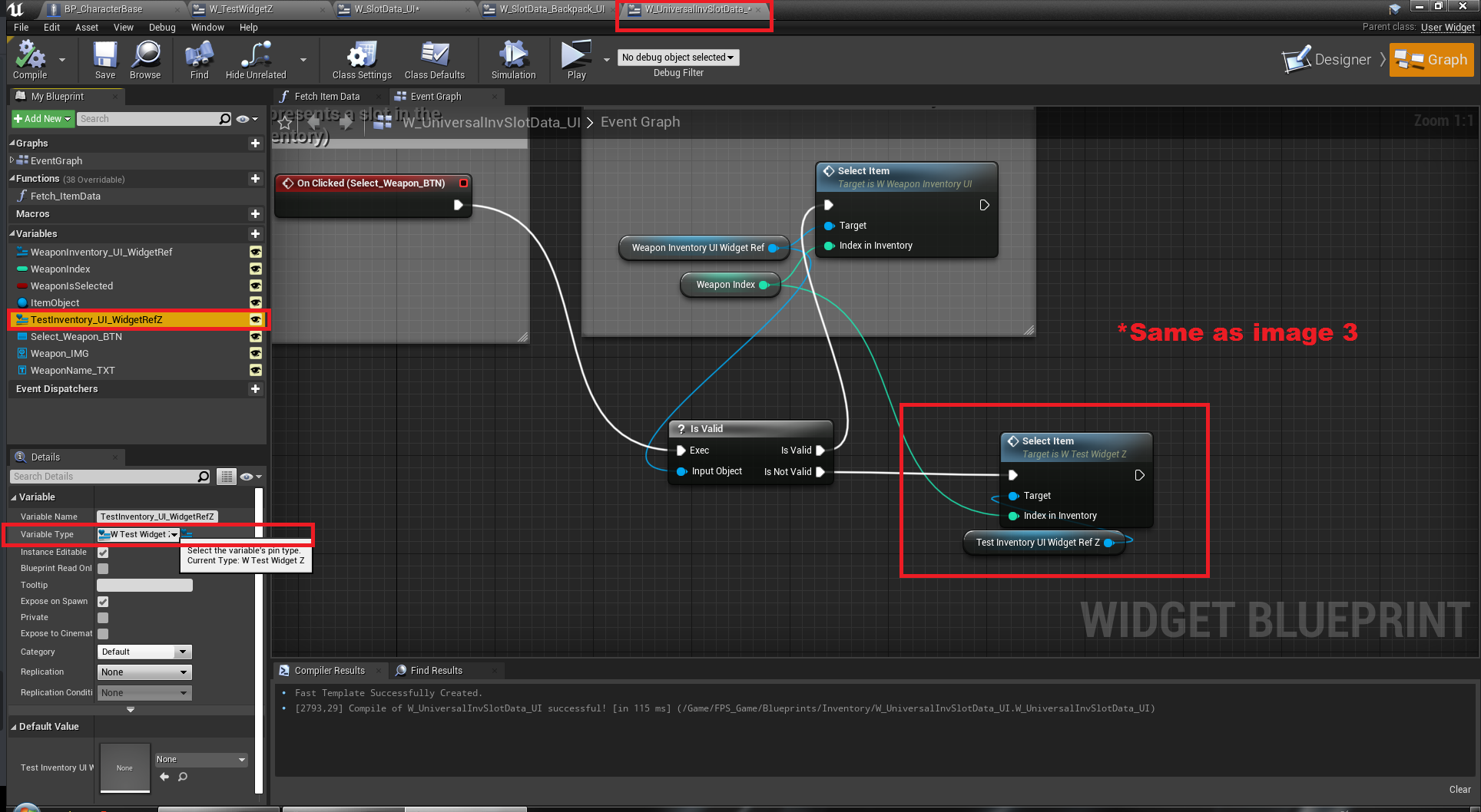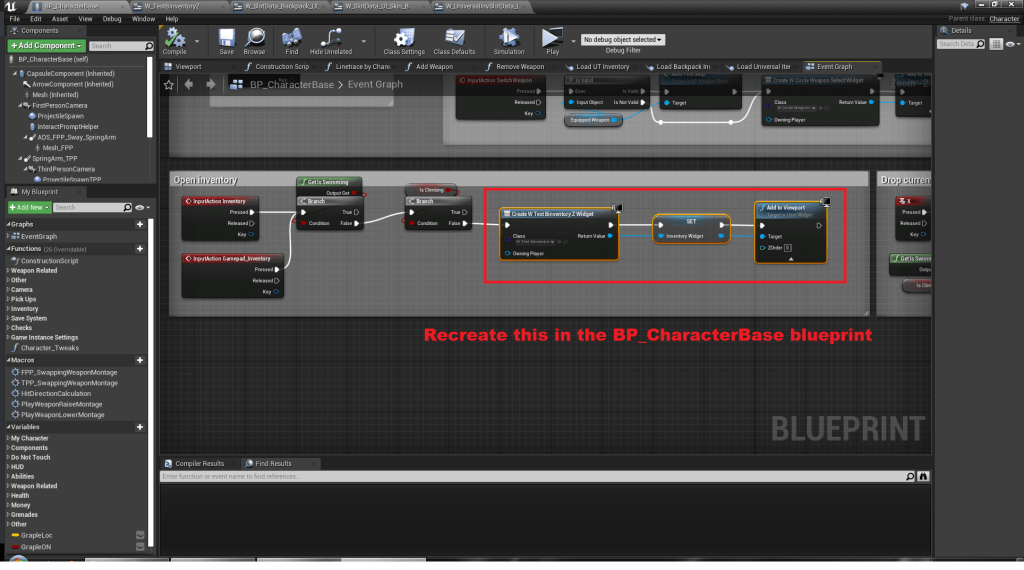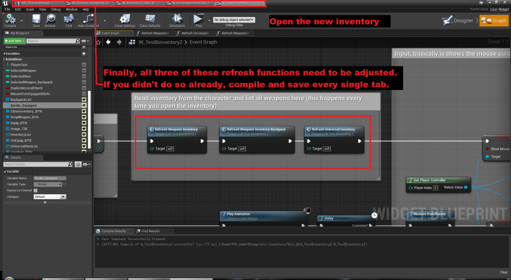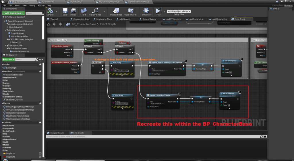 Other than swapping what widget it should show, no changes are required on the character, as the inventory widget is being used to display the content of the arrays.