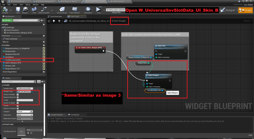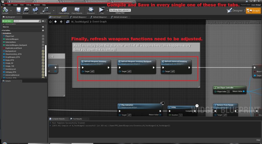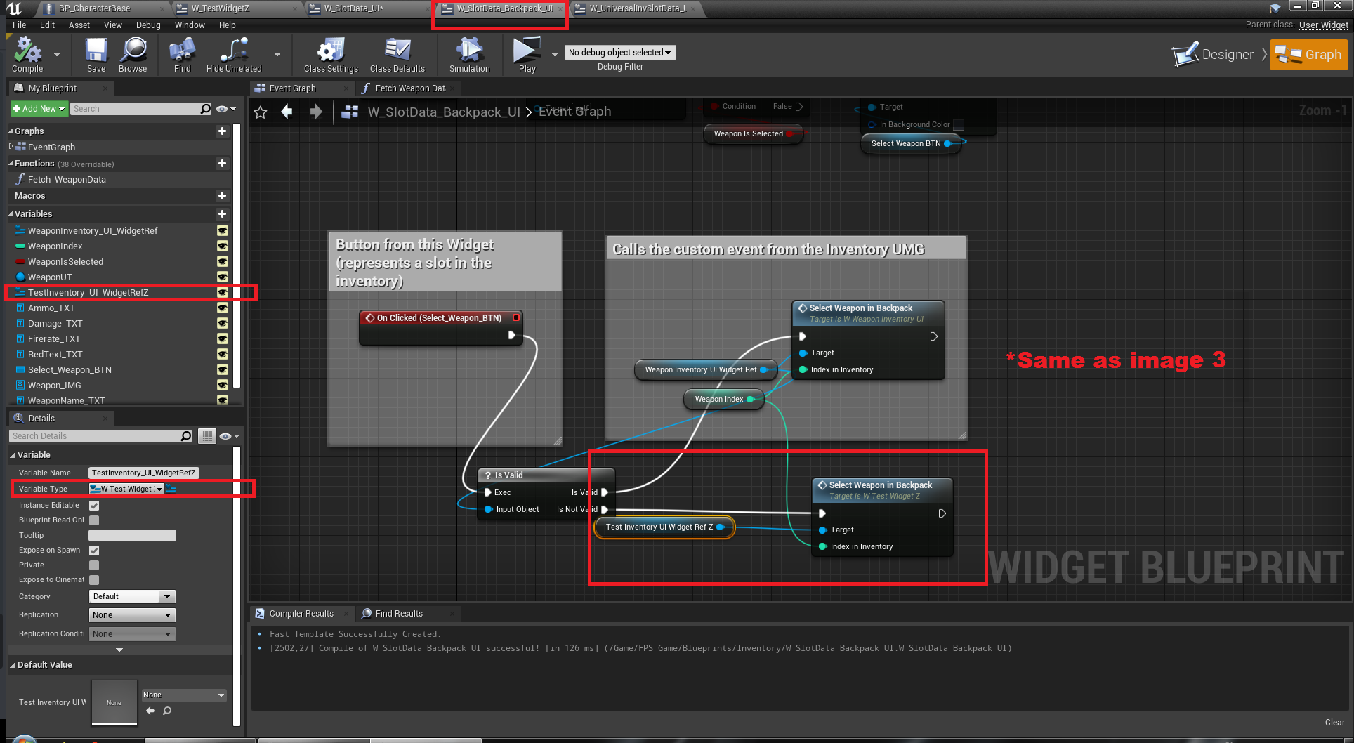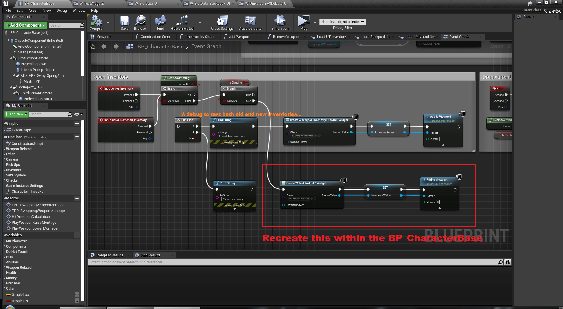 Other than swapping what widget it should show, no changes are required on the character, as the inventory widget is being used to display the content of the arrays.