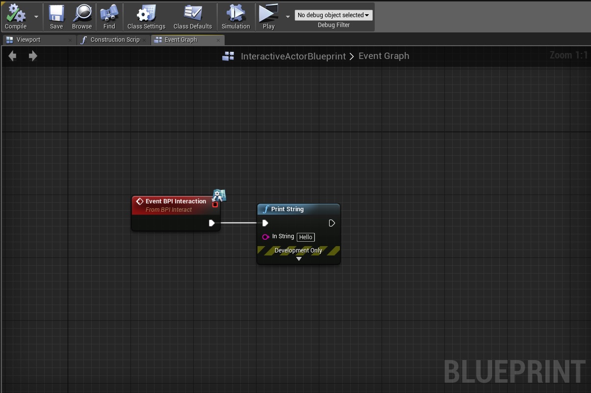 And lastly, in the Event Graph, call the Event and add some logic you want this Actor to do, in this case it’s gonna say Hello using the Print String when interacted with.