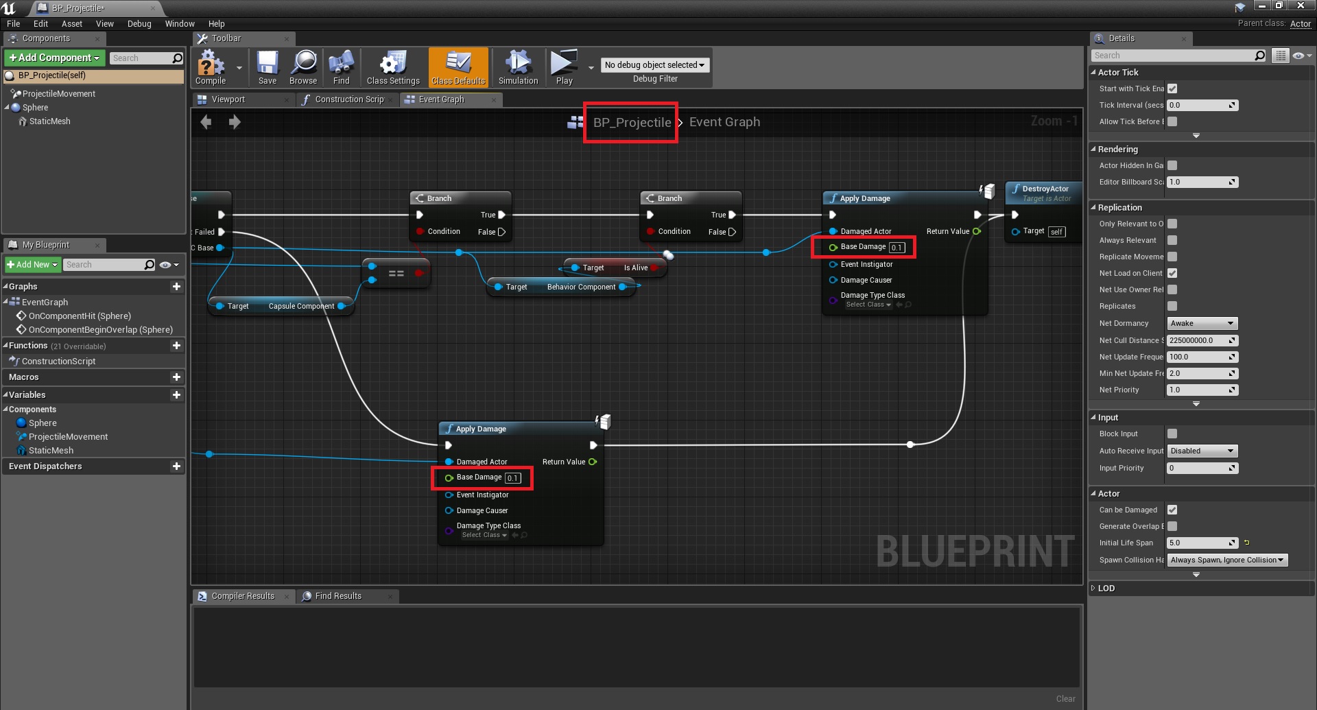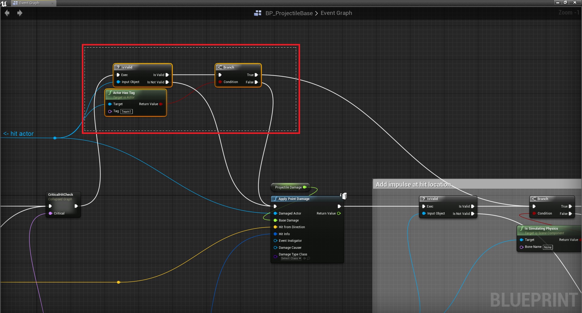 8. now open BP_ProjectileBase (FPS_Game/Blueprints/Weapons/Base/) and add this to the apply damage part
