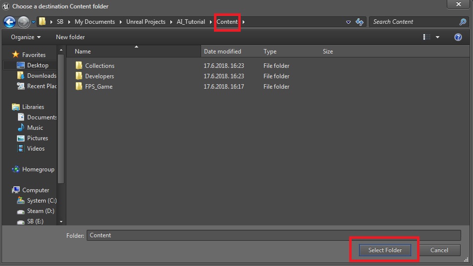 4. open the AI project and migrate the AIBehaviorToolkit folder into the Content folder of your FPS project