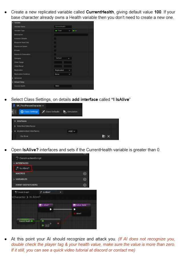 I don’t know where to post this info but here I go. If you’re having trouble doing melee damage to the AI from AIBehaviorToolkit, that’s due to the Collision on the CapsuleComponent. Here’s what you have to do to fix that.