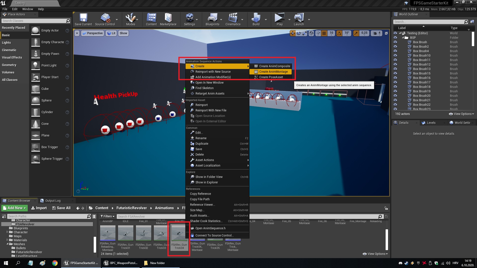 10. Create a montage from all 6 firing animations from the revolver pack, because it uses a different one for each bullet