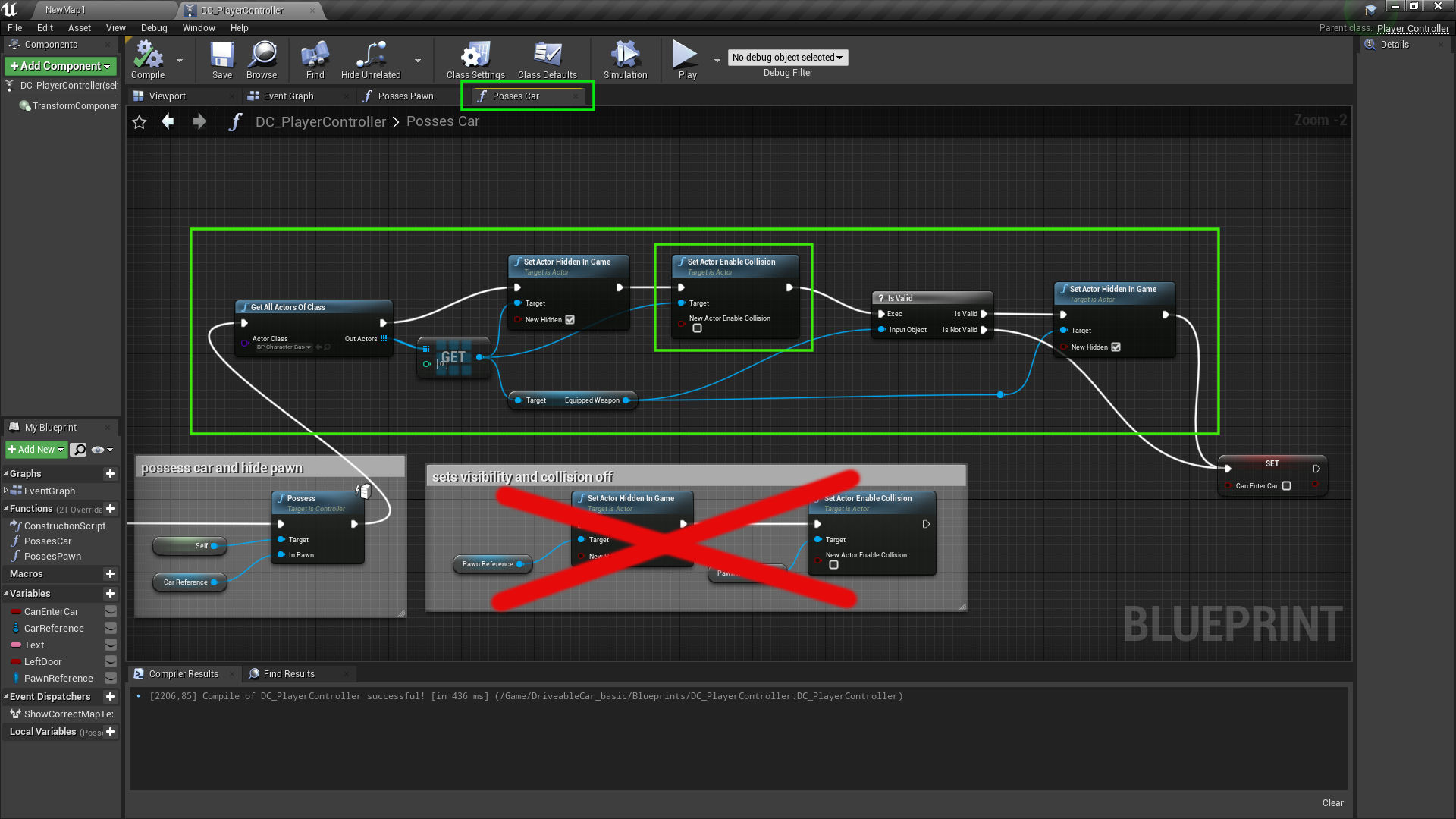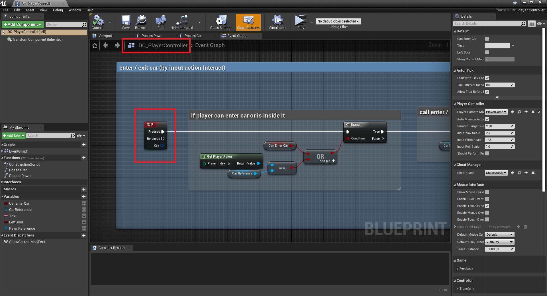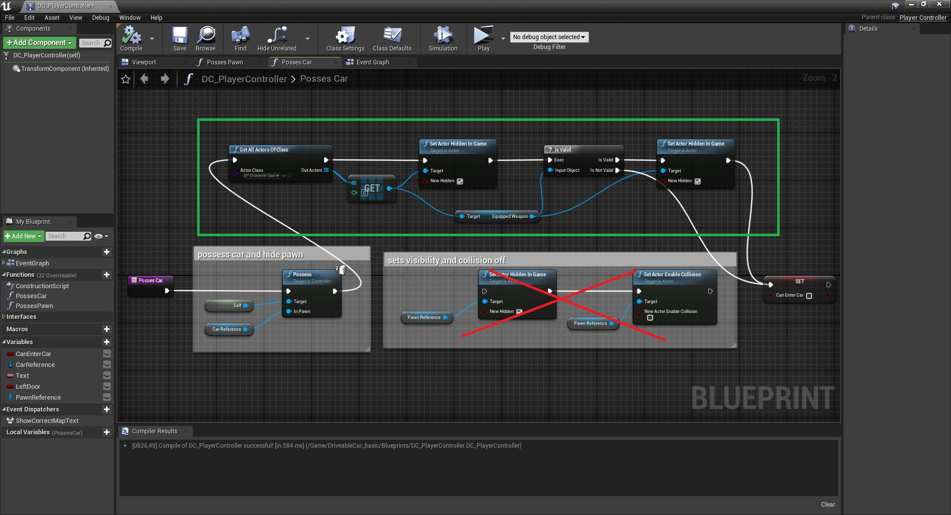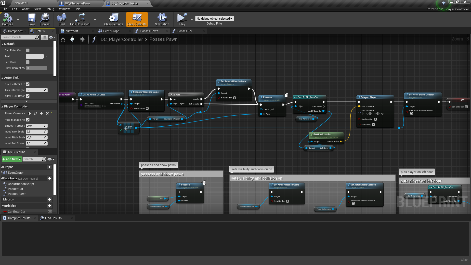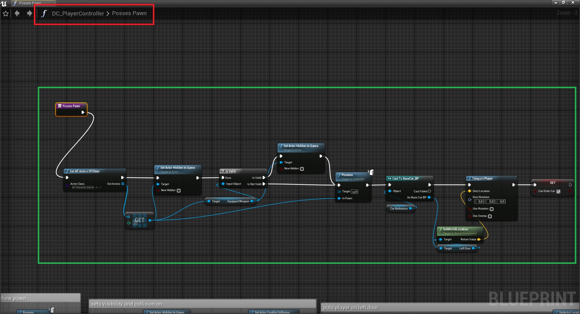 8. Still inside its controller, open the Possess Car function and replace the old logic with this