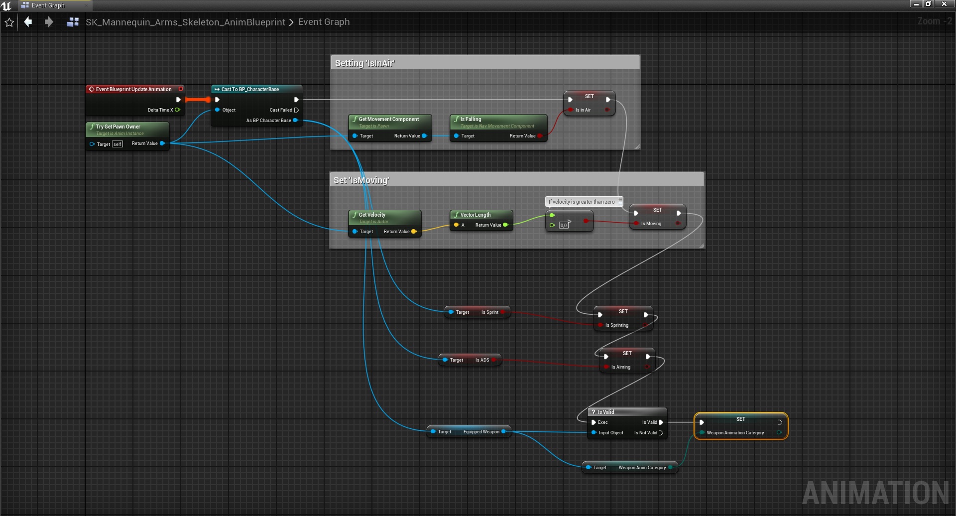 4. Create this inside the new animbp – edit: ok so after a shocking amount of times I got asked how to make this…. get the weapon, get the enum from it, promote it to a variable… (no video sorry)