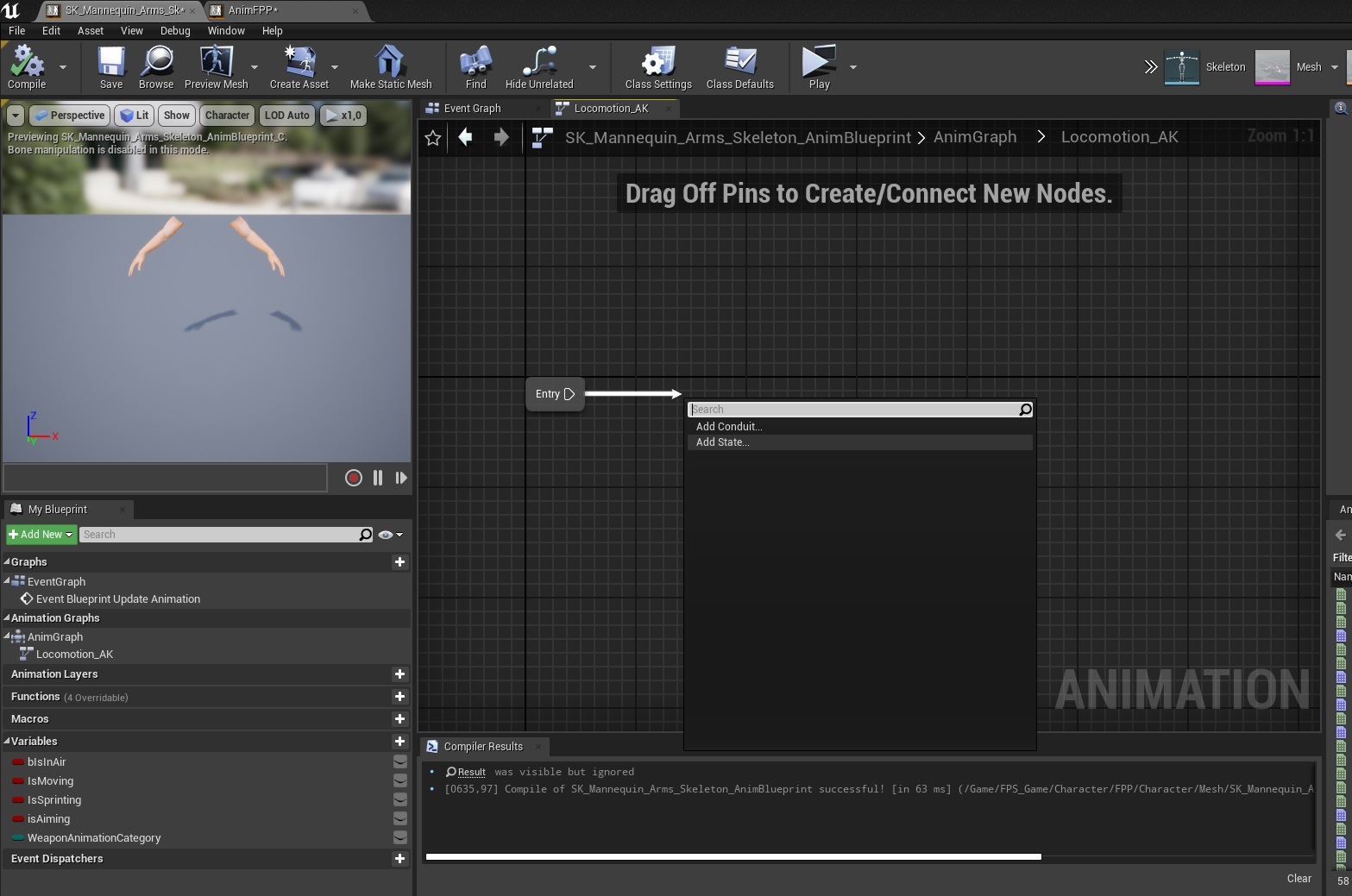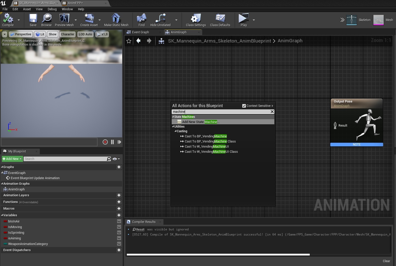 There is also a simple way if you only need the arms mesh, but don’t want different animations. This will work with any mesh that uses the UE4 skeleton.