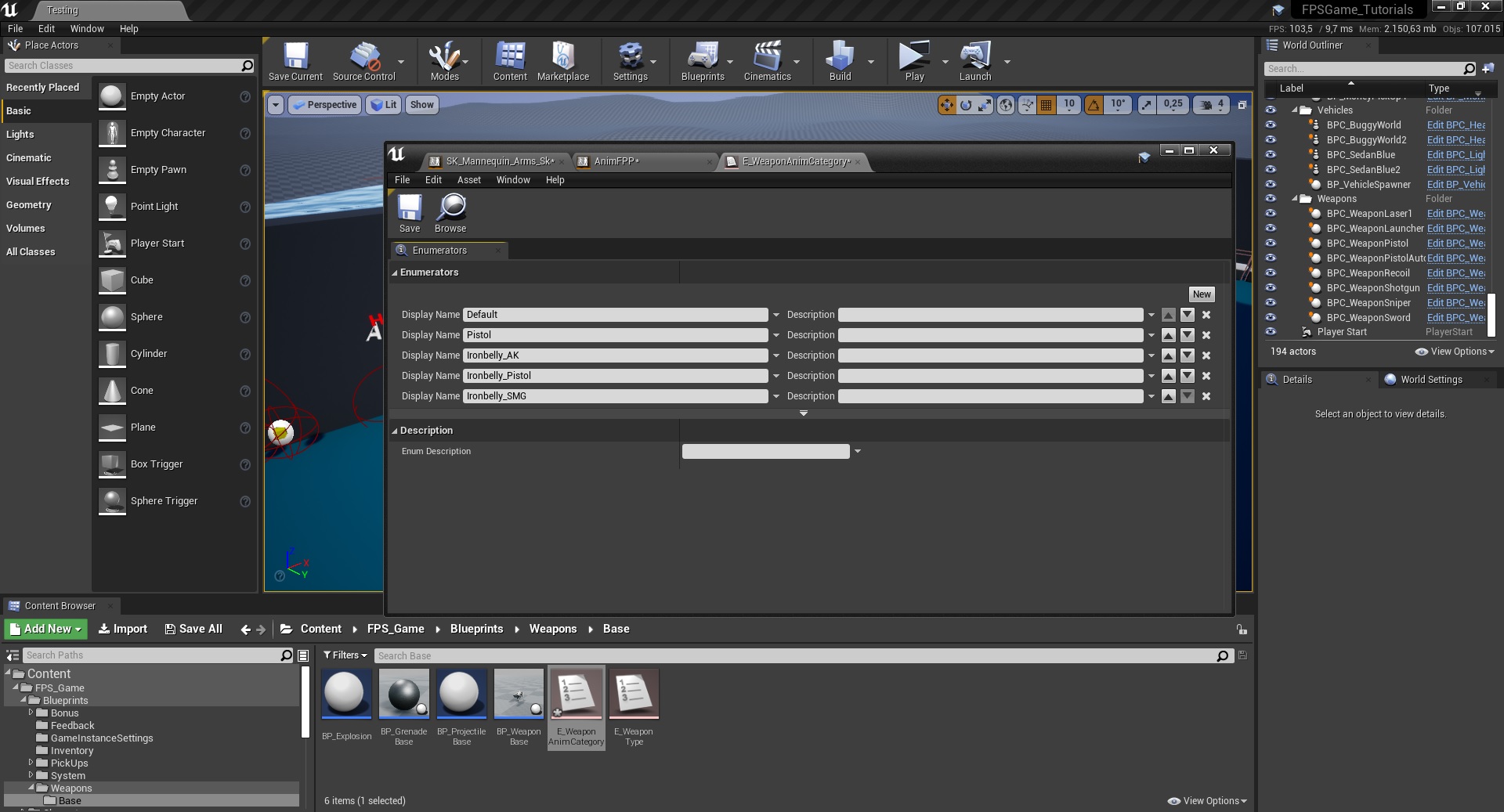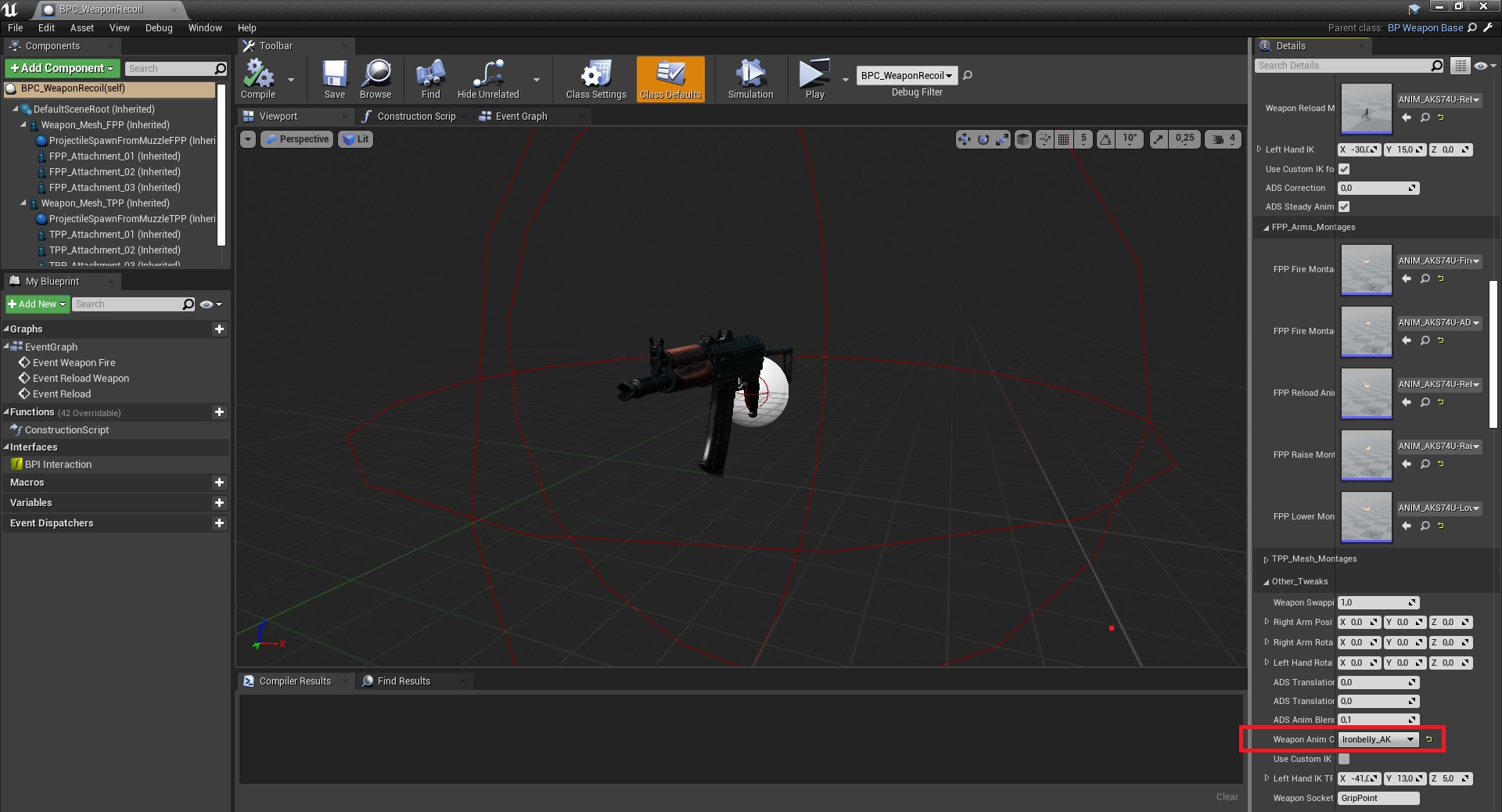 15. On your weapon child classes, set what enum it should use and the animation montages for the arms