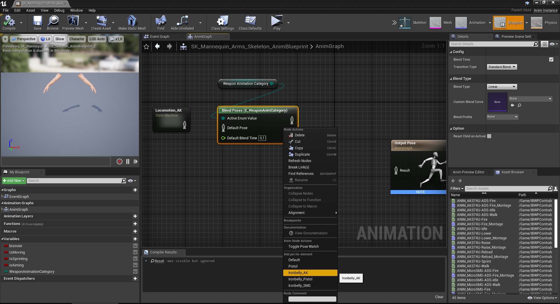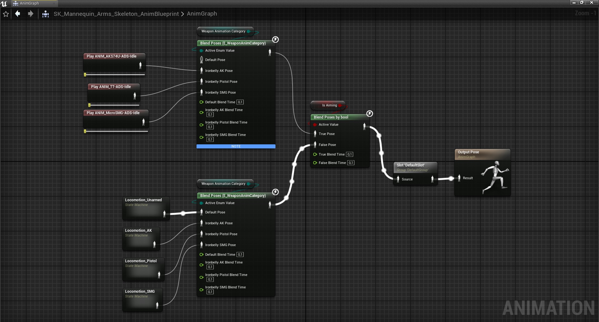12. Create locomotions for all of your ironbelly weapons and connect them in the animbp like this
