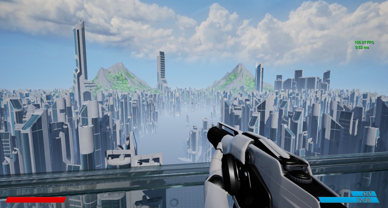 ~70-100fps even with a large amount of foliage or buildings.