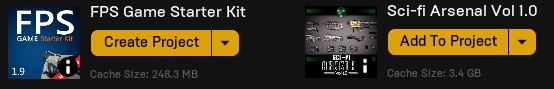 1. Create a new FPS Game Starter Kit project and add Sci-Fi Arsenal Vol.01 to it