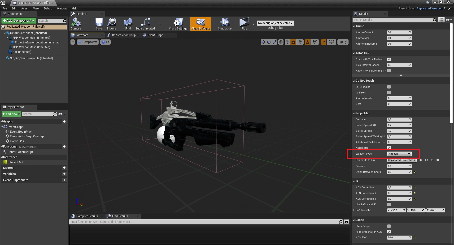 6. Make sure your weapon child classes are set to be Hitscan and not Projectile based