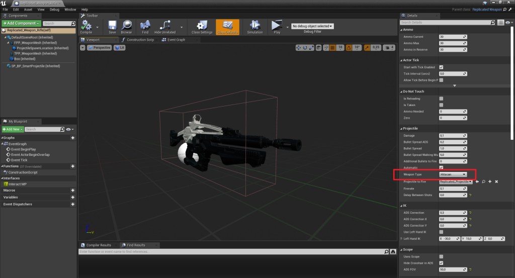 In this tutorial we will replace the linetrace logic from FPS Game Starter Kit and make it use the system from Smart Linetrace Projectile by ND.Store. The reasoning behind this is if you need more options such as wall penetration, falloff and other things to tweak a weapon, but don’t want to use projectile based ones and prefer hitscan instead.