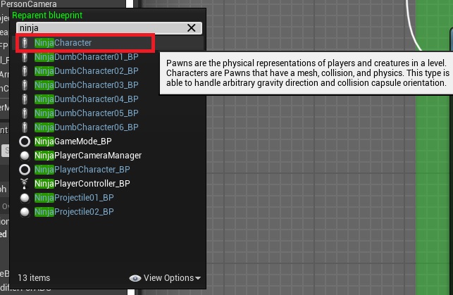 5. From the tiny window that appears, search for NinjaCharacter and select it