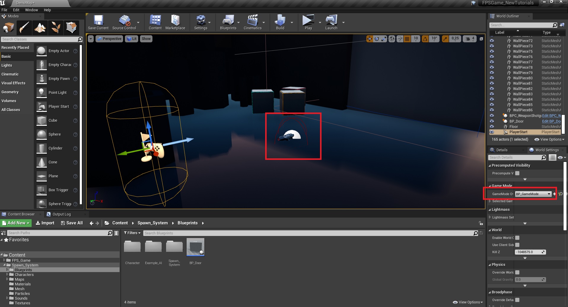 1. Open the demo map that comes with Open World AI Spawn System and set the game mode to be BP_GameMode, additionally, locate the player start and place any weapon from FPS Game Starter Kit there.