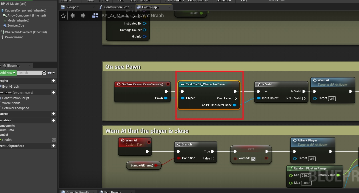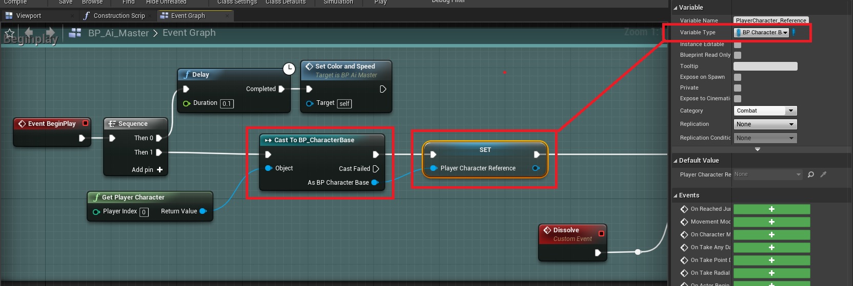 With the new variable changed, replace the old cast with a new one that casts to BP_CharacterBase