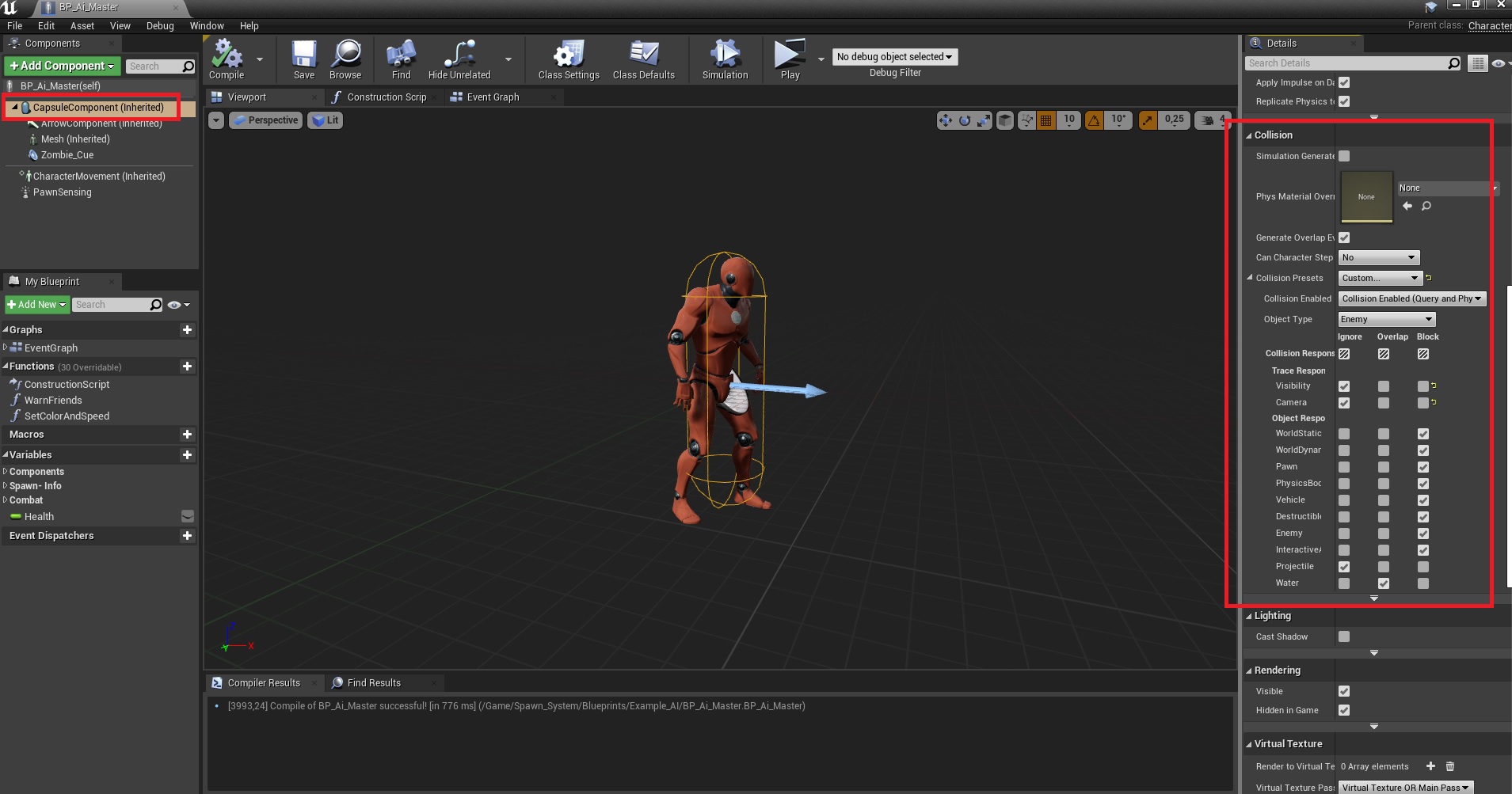 7. And on its mesh component, change the collision to be like this. Additionally add the flesh surface type onto it, to have the blood particle show up.