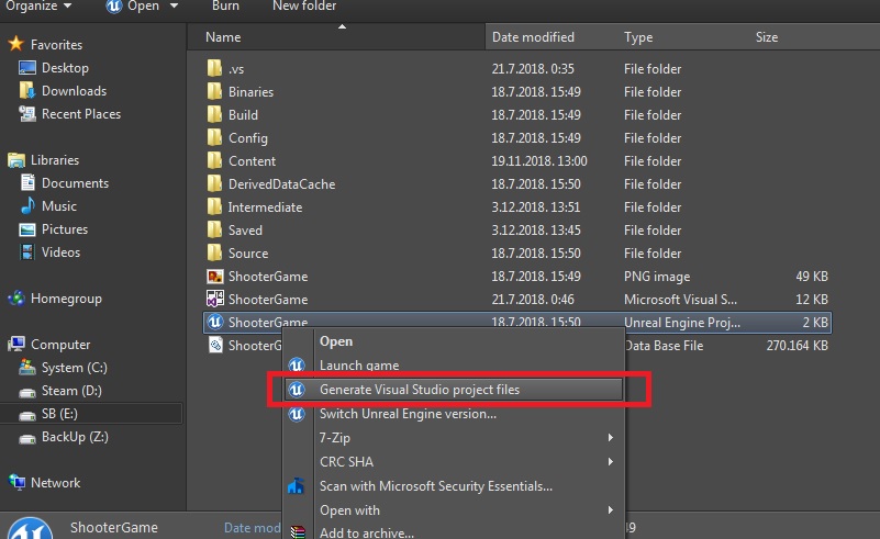 3. Find the project you created, right click on it, generate VisualStudio project files