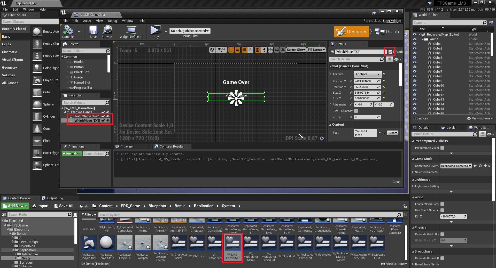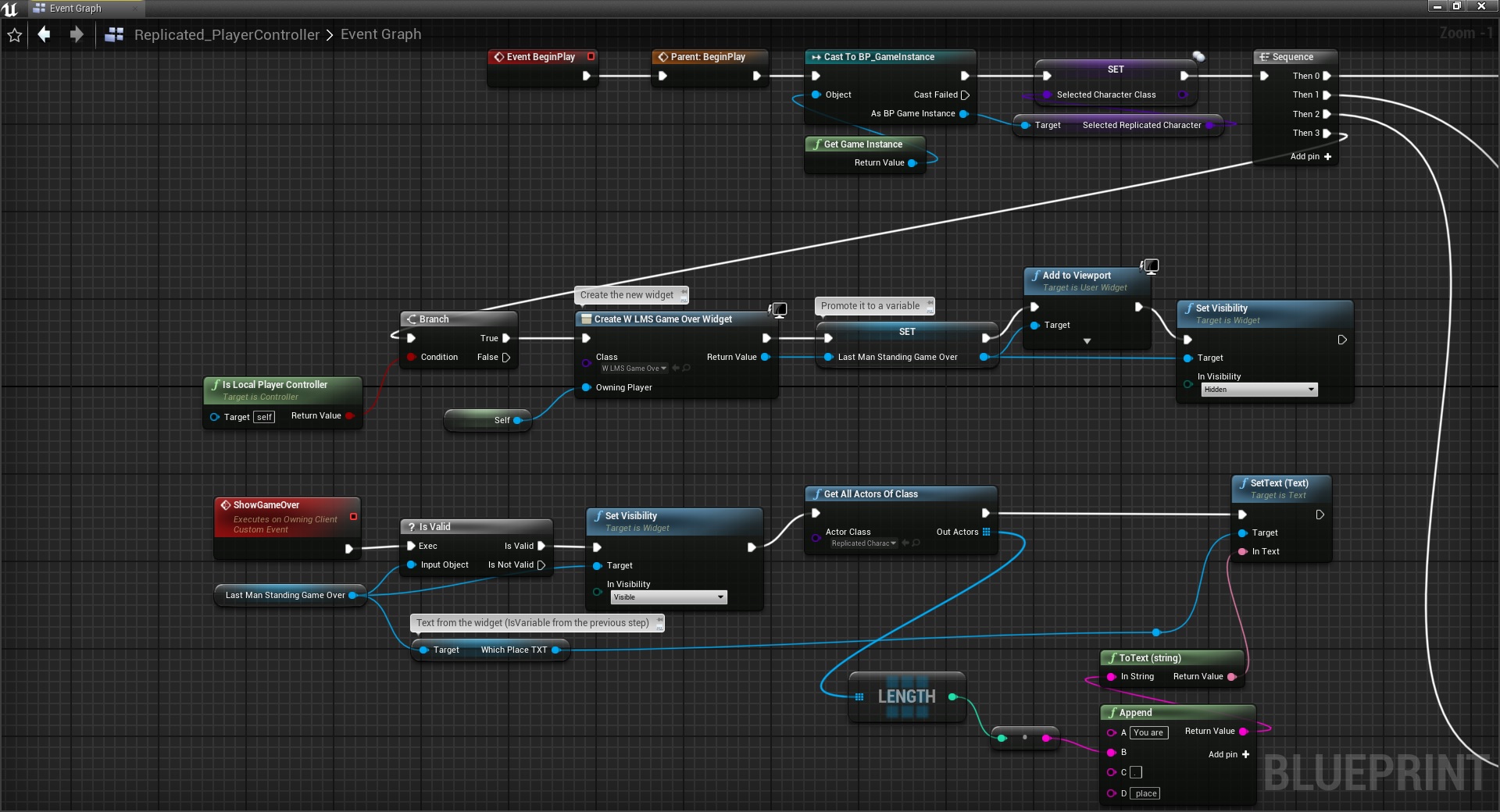 3. Open the Replicated_PlayerController and add this to it, that’s basically the game over widget with the which place you are variable.