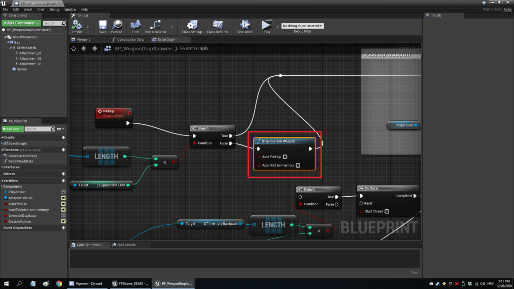 This also means that the inventory widget itself can be entirely bypassed in order to do such things, you can call the Drop Current Weapon function from anywhere really
