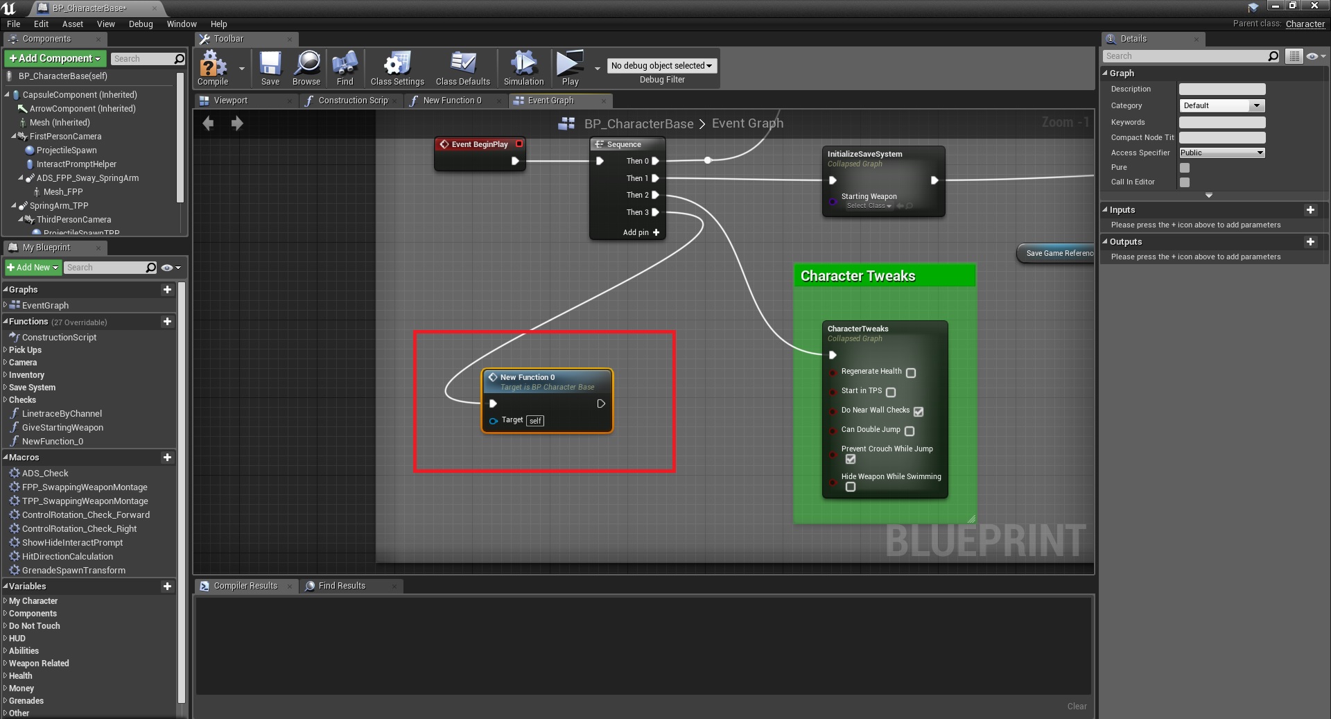 10. Still on the Character, connect the new function anywhere on Begin Play