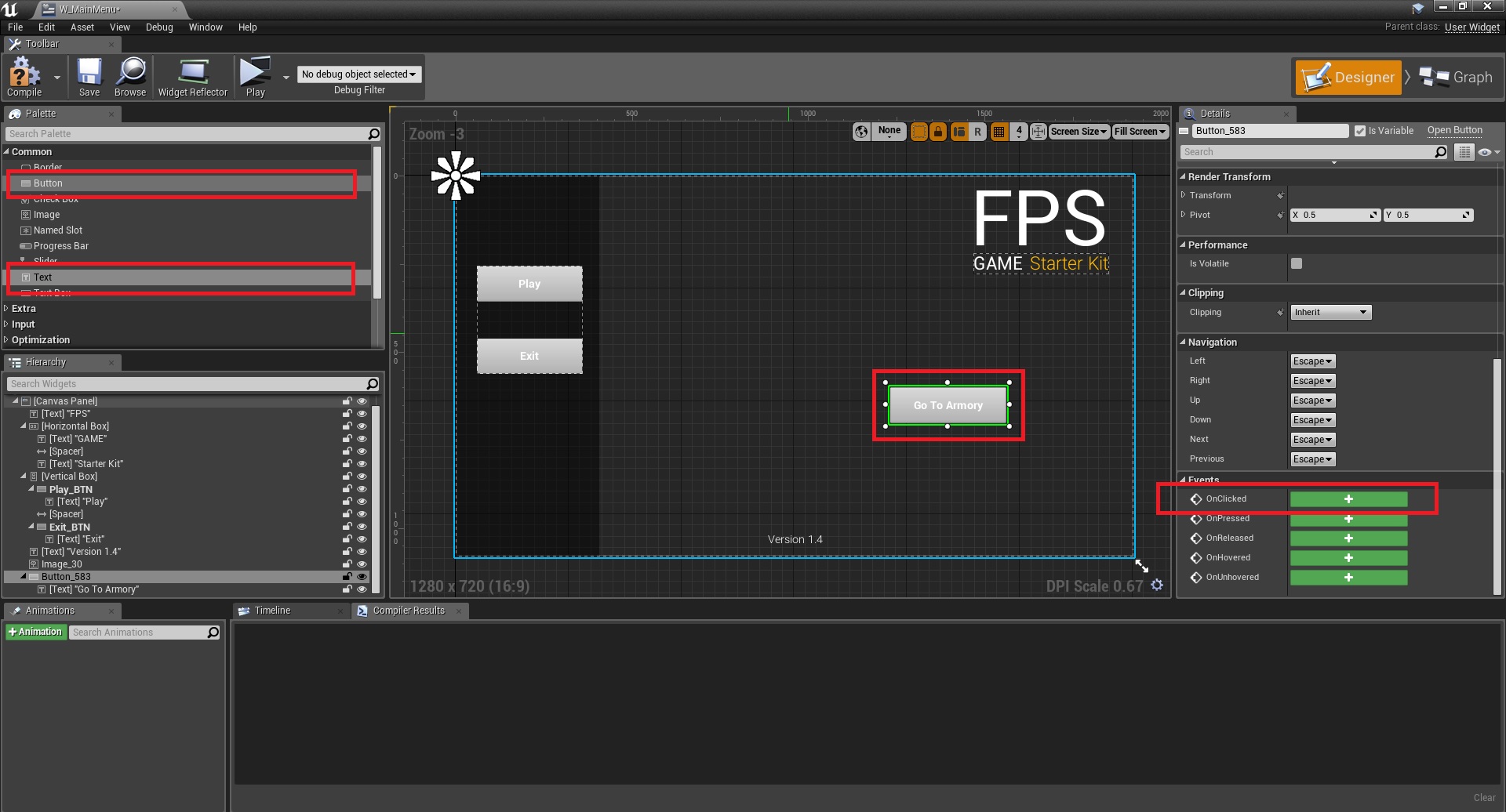 8. Still in the Main Menu widget, add this to its Event Construct and to the button on pressed/clicked