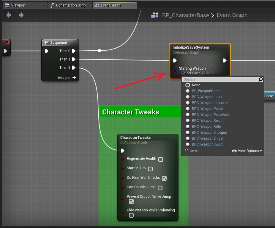 Technically this tutorial isn’t even needed, as the ability to have a Starting Weapon is already built-in and can be set in Begin Play on the Character..