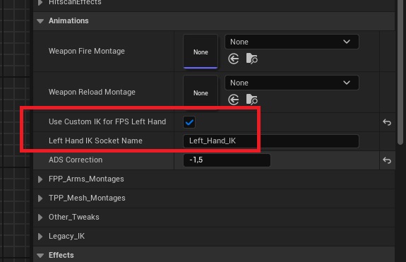 EDIT: it seems I must specifically write this, but to use the IK, enable the IK checkbox on the weapon and tell it what socket name it should look for. Thank you.