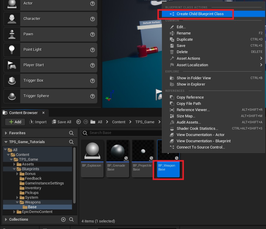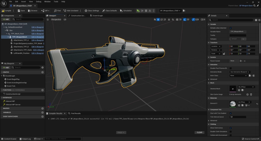 Creating new weapons is very similar to FPS Game Starter Kit and TSS Game Starter Kit, basically there is a weapon base class, and all other weapons that you create are its child classes, but with different stats, mesh, etc.