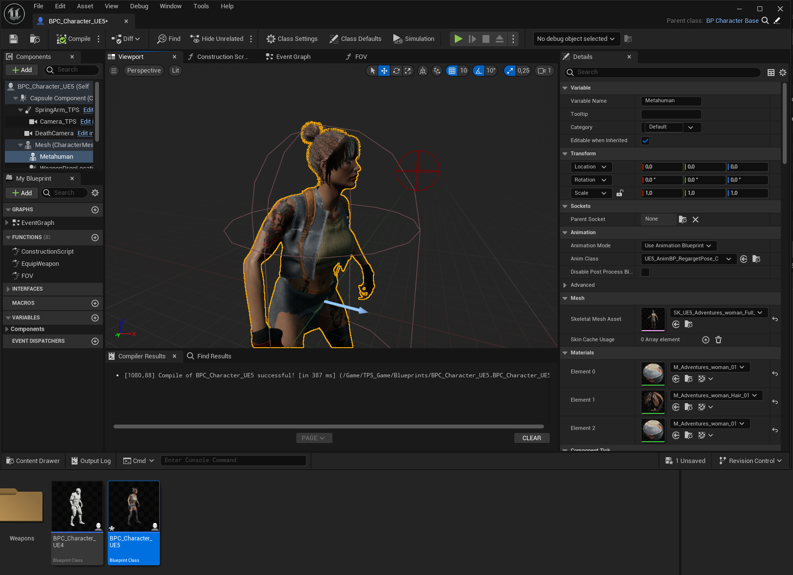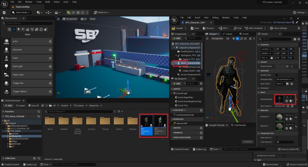 3. Open the UE4 (or UE5) character child class and simply swap out the mesh