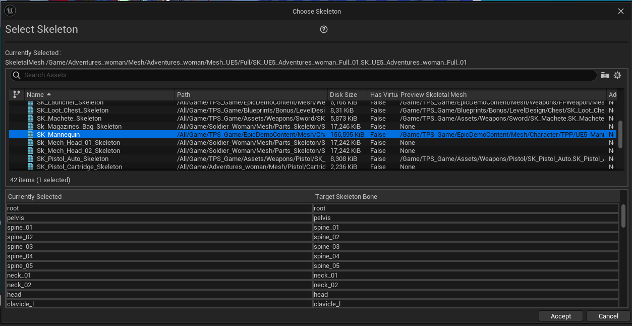 By default, it comes with both UE4 and UE5 skeletons, in this tutorial we will change the unreal mannequin with a custom character.