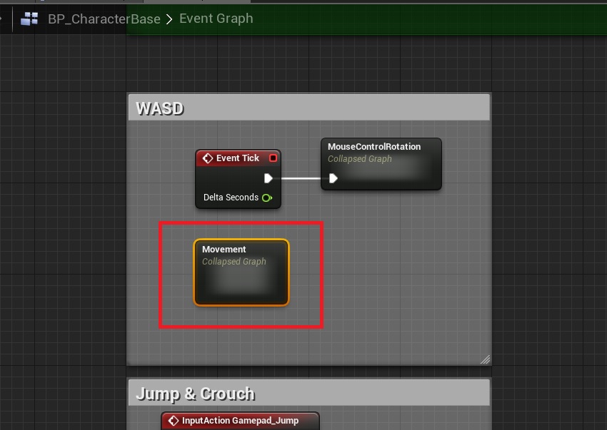 1. Open BP_CharacterBase and find the WASD graph