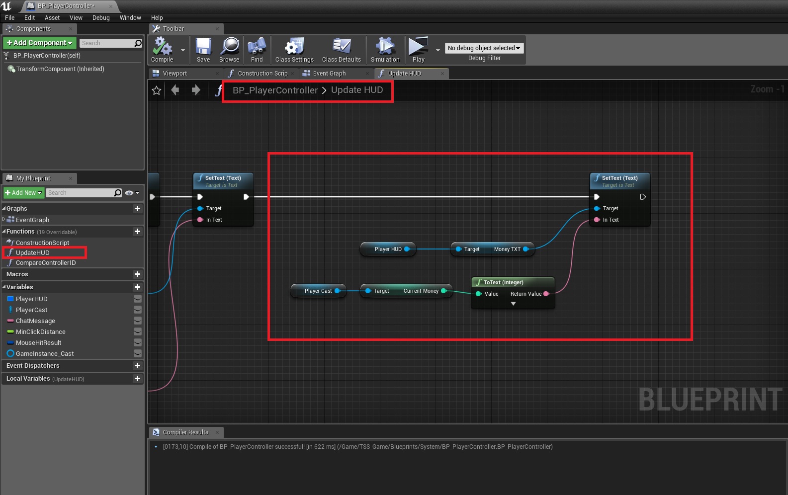 4. Open BP_PlayerController and inside the UpdateHUD function recreate the following at the very end.