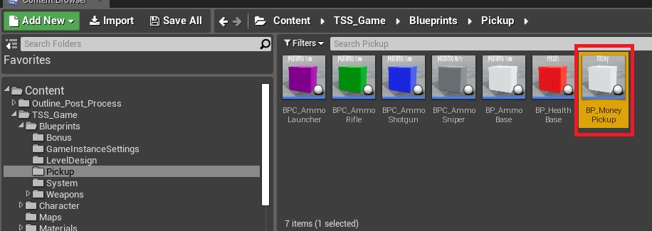 2. Duplicate the health pickup and change its blueprint to add money instead of health.